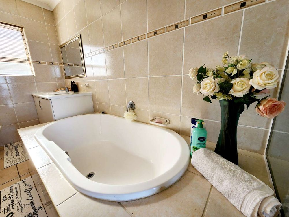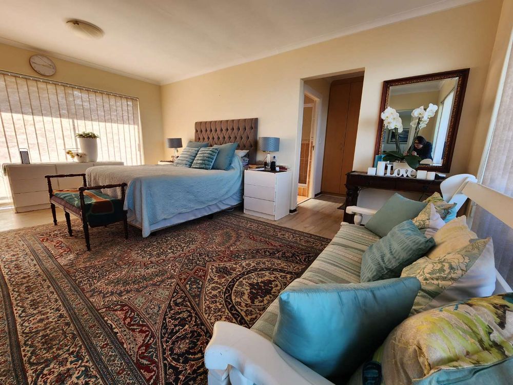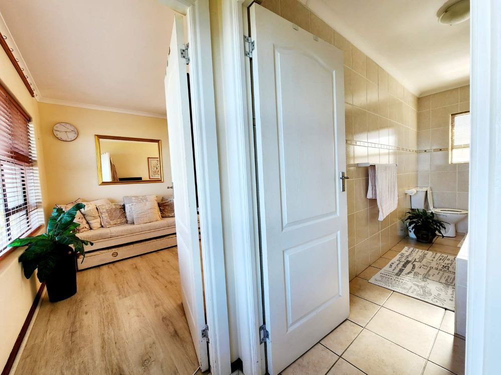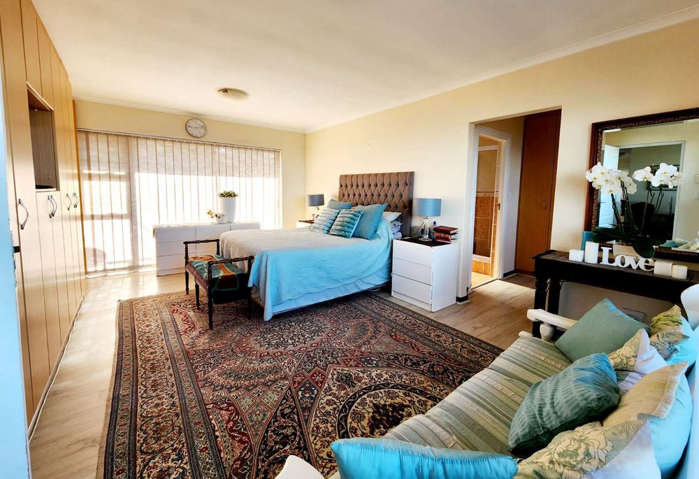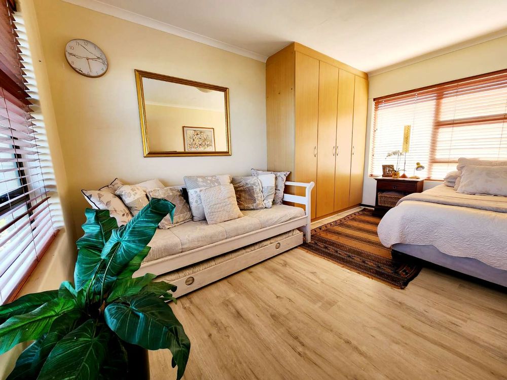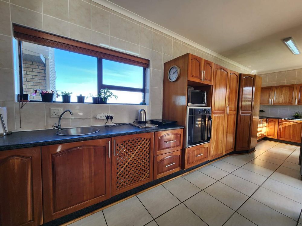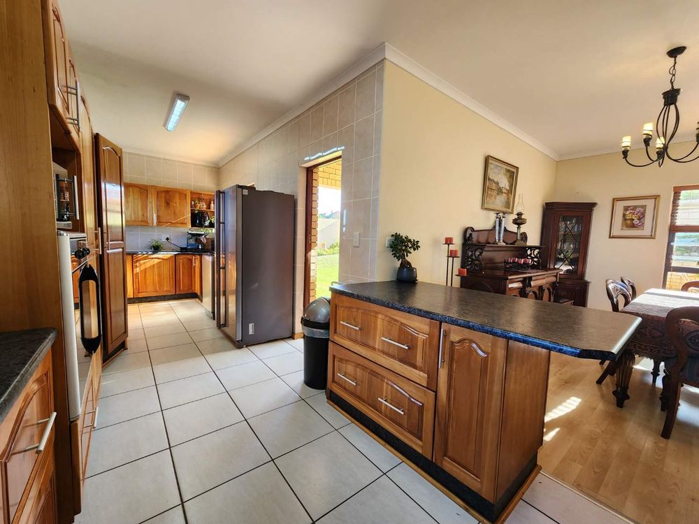 Step into the spacious enclosed backyard with ample space for children and pets to play freely. An en-suite guest room with an additional lounge and inside braai facility offers a perfect space for entertaining while enjoying the magnificent views. The kitchen boasts ample cupboards and modern appliances, making it a chef's dream.